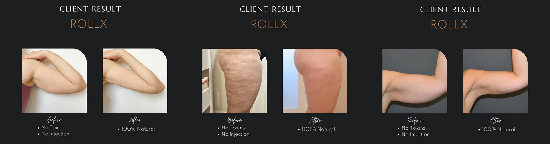 Our non-surgical RollX Therapy technique combats the appearance of cellulite, even in areas of the body where fatty deposits can build up and traditionally be tricky to remove. This build-up can occur on the arms, back, waist, abdomen, thighs and buttocks. Our treatments can improve fatty deposits on these areas, leaving your body smooth and toned.